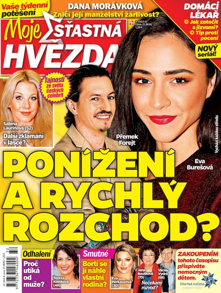 MOJE ŠŤASTNÁ HVĚZDA je nejnovějším společenským týdeníkem na trhu, který přináší aktuální zprávy ze světa slavných osobností. Čtenáři díky časopisu poznají skutečný život populárních herců, zpěváků, moderátorů či jiných známých celebrit. Už za krátkou dobu působení na trhu se ukázalo, že MOJE ŠŤASTNÁ HVĚZDA přináší spoustu exkluzivních informací jako první, proto se čtenáři tyto zprávy proto dozví jako první. Titul je navíc obohacen i bonusovými materiály, které jsou v médiích velmi oblíbené, a Moje šťastná hvězda chce nabídnout jen to nejlepší. Nechybí zde recepty, horoskopy, zajímavosti, rady pro zdraví i krásu i soutěže o lákavé ceny. Časopis pravidelně zařazuje i bonusové několikastránkové přílohy, které jsou zdarma. MOJE ŠŤASTNÁ HVĚZDA je i rádcem, a proto zařazuje témata, o které si čtenáři sami píší.